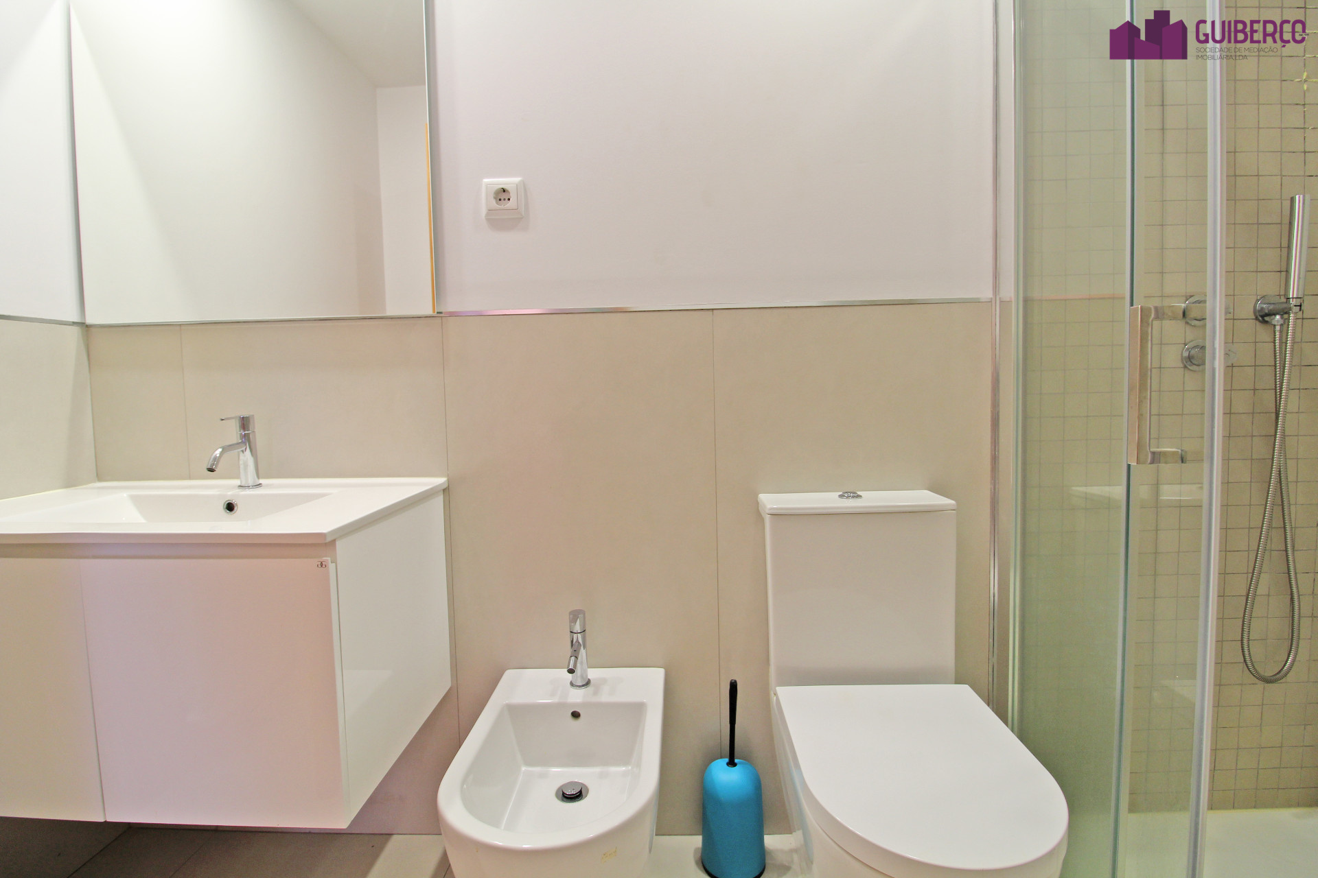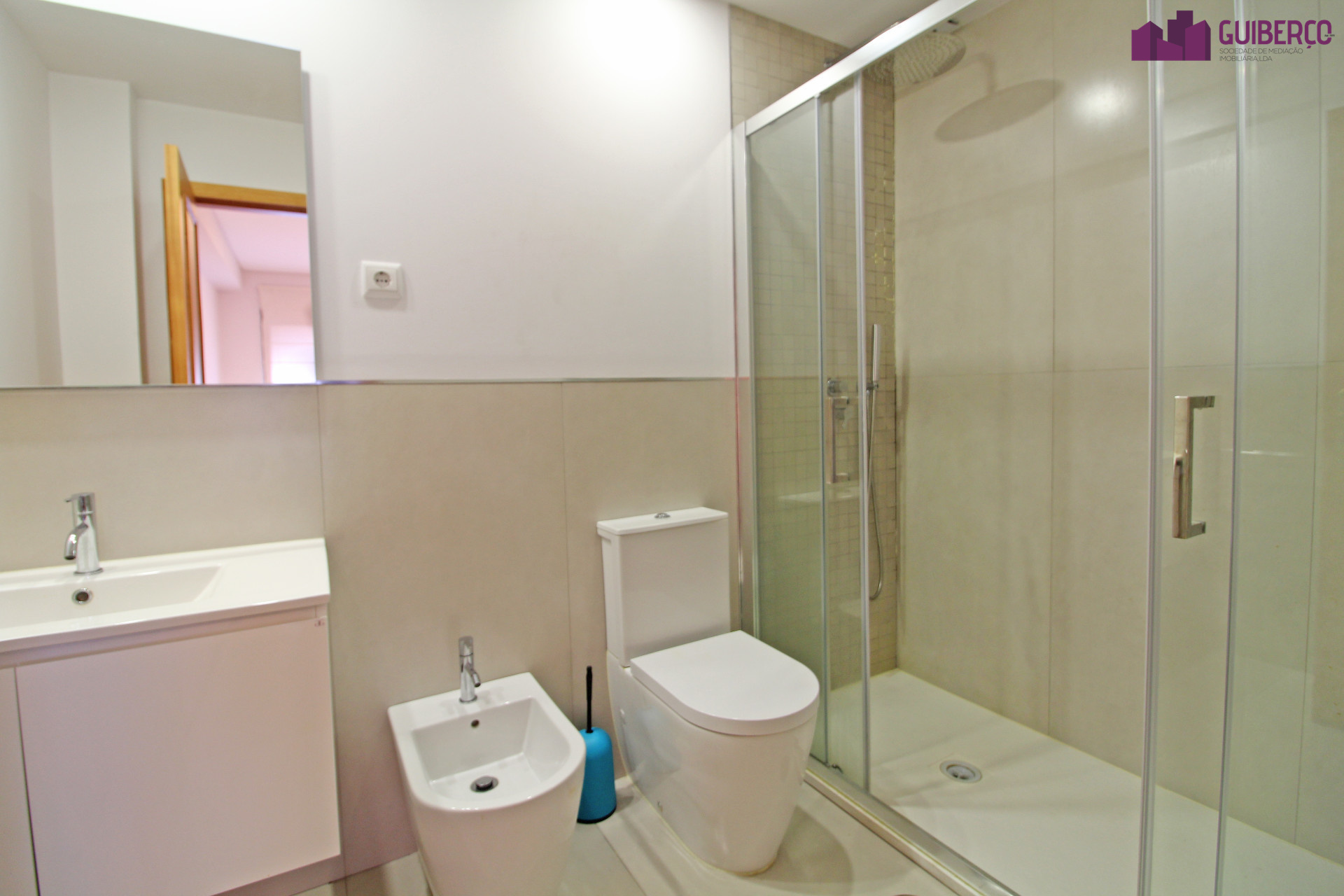 - Casa de banho completa com base de chuveiro de apoio aos quartos;